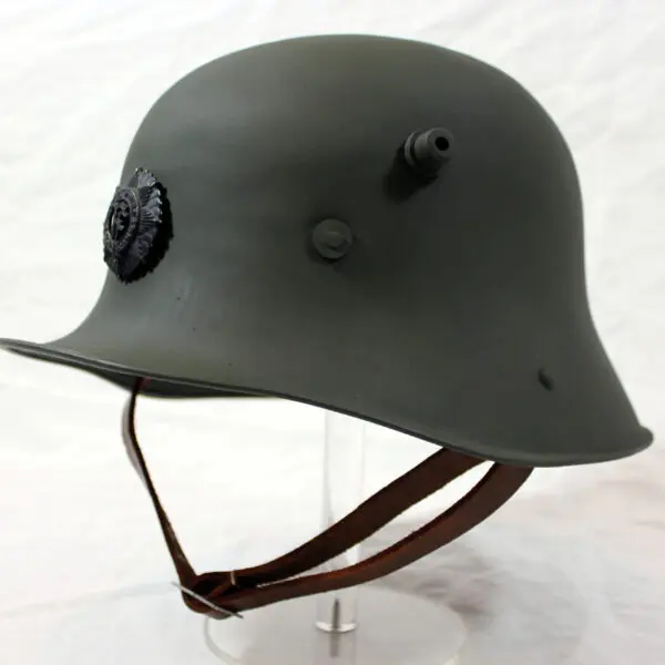 Around this period, the newly formed Defence Forces began looking for a new steel helmet. Initially, the French Adrian helmet was tested but proved unsatisfactory, although the helmet compared favourably when tested against modern helmets in 2020.[3] The next helmet considered by the Irish was the German Stahlhelm. However, under Article 170 of the Treaty of Versailles, Germany was prohibited from manufacturing and exporting ‘arms, munitions and war material of every kind’ to foreign countries.[4] To overcome this problem, the Irish Free State commissioned new helmets based on the German design.